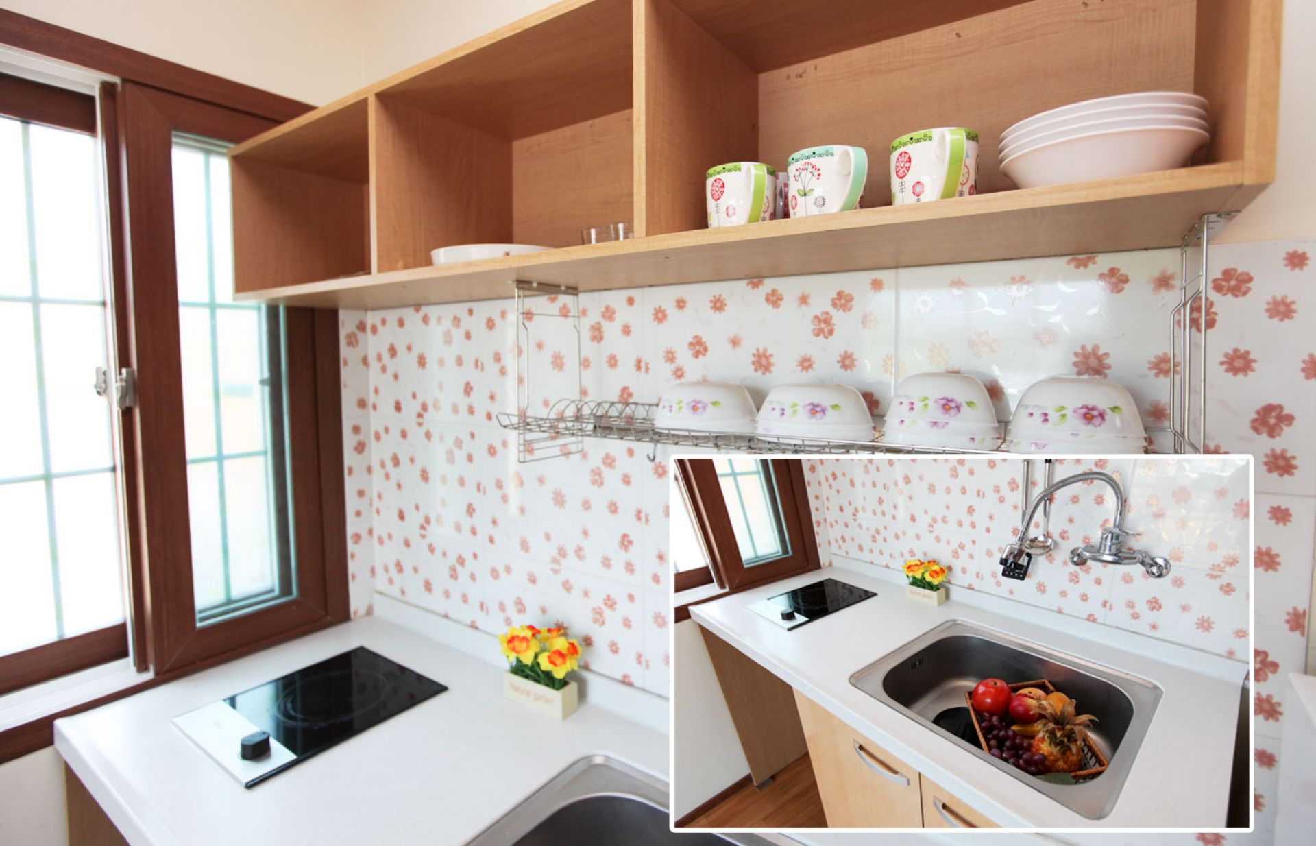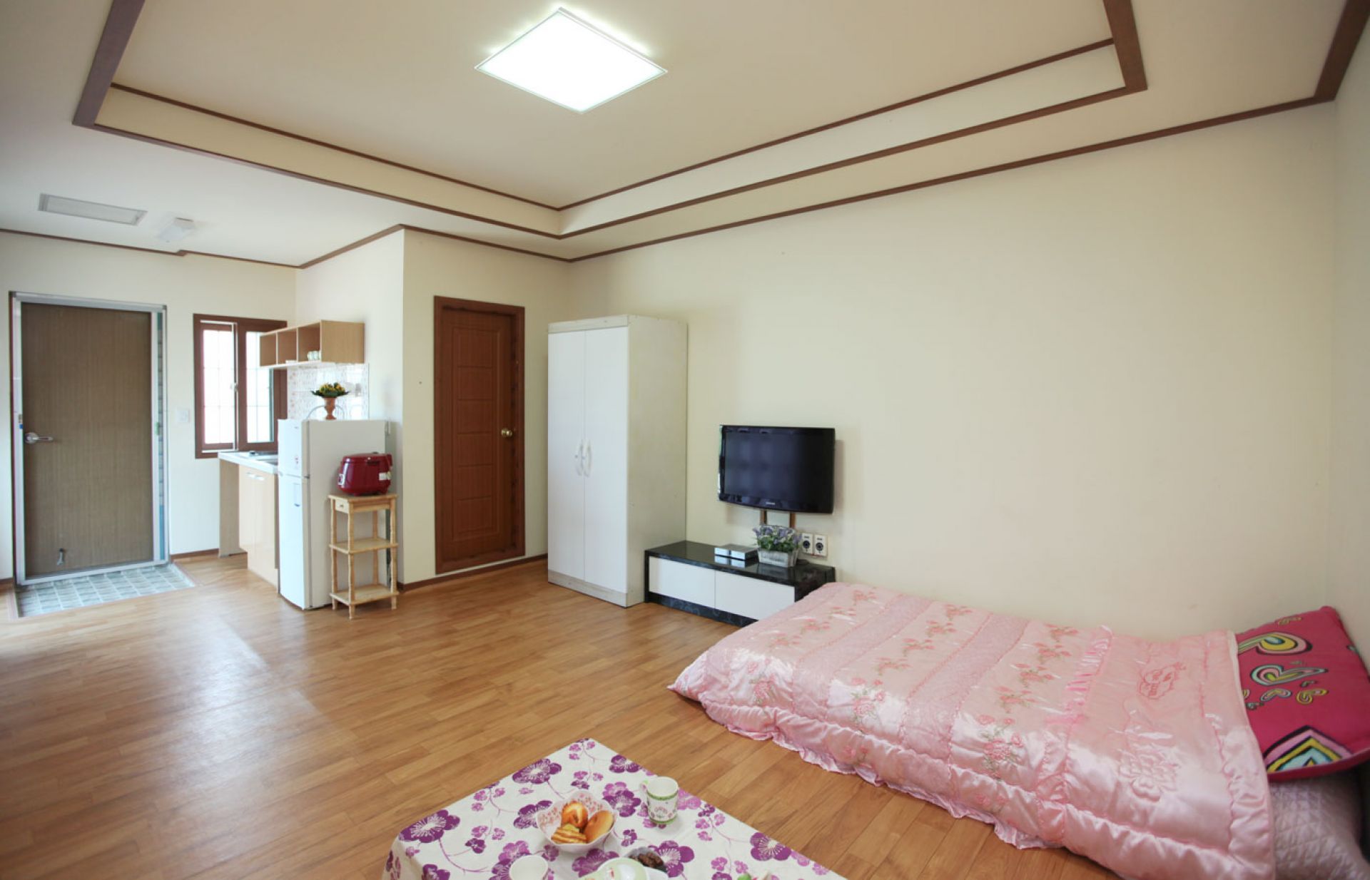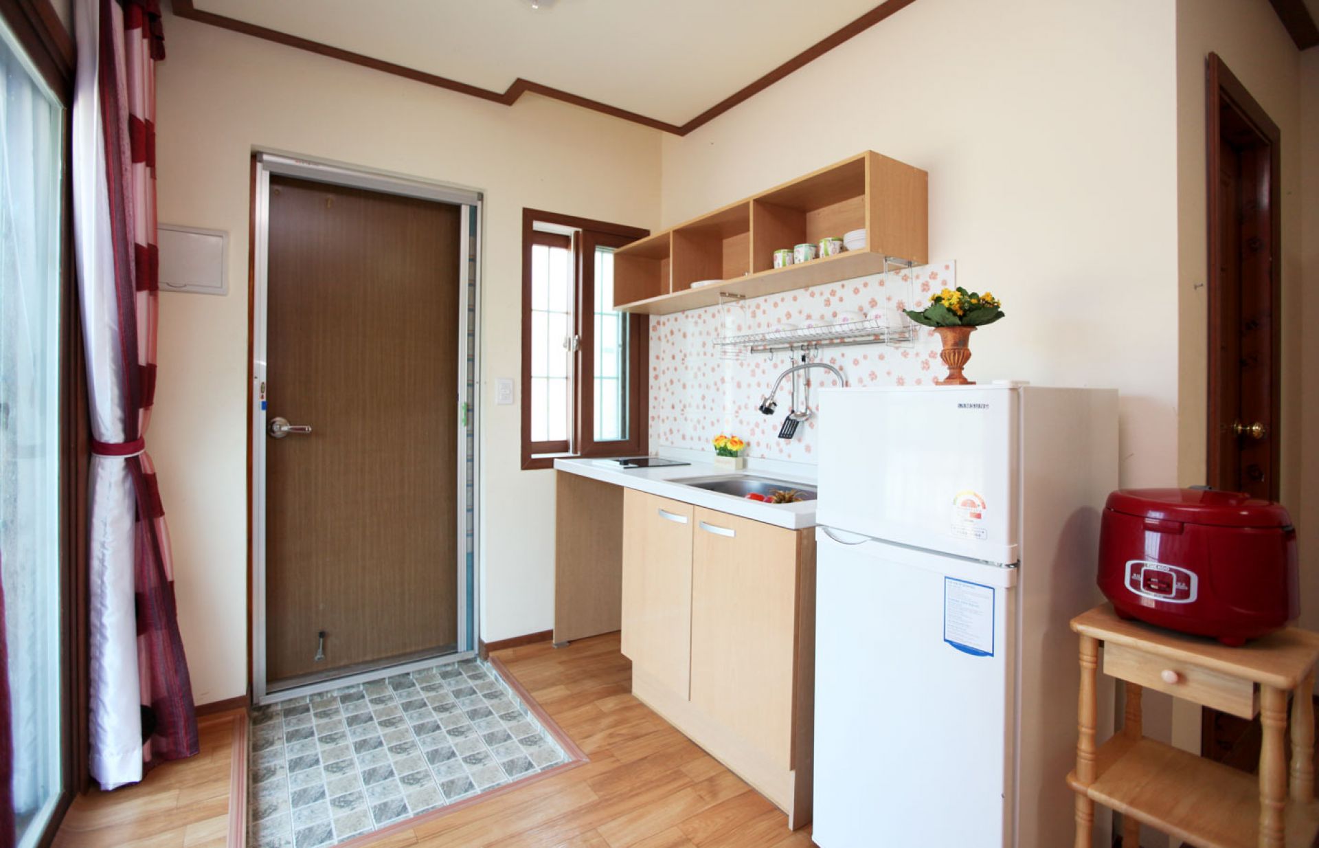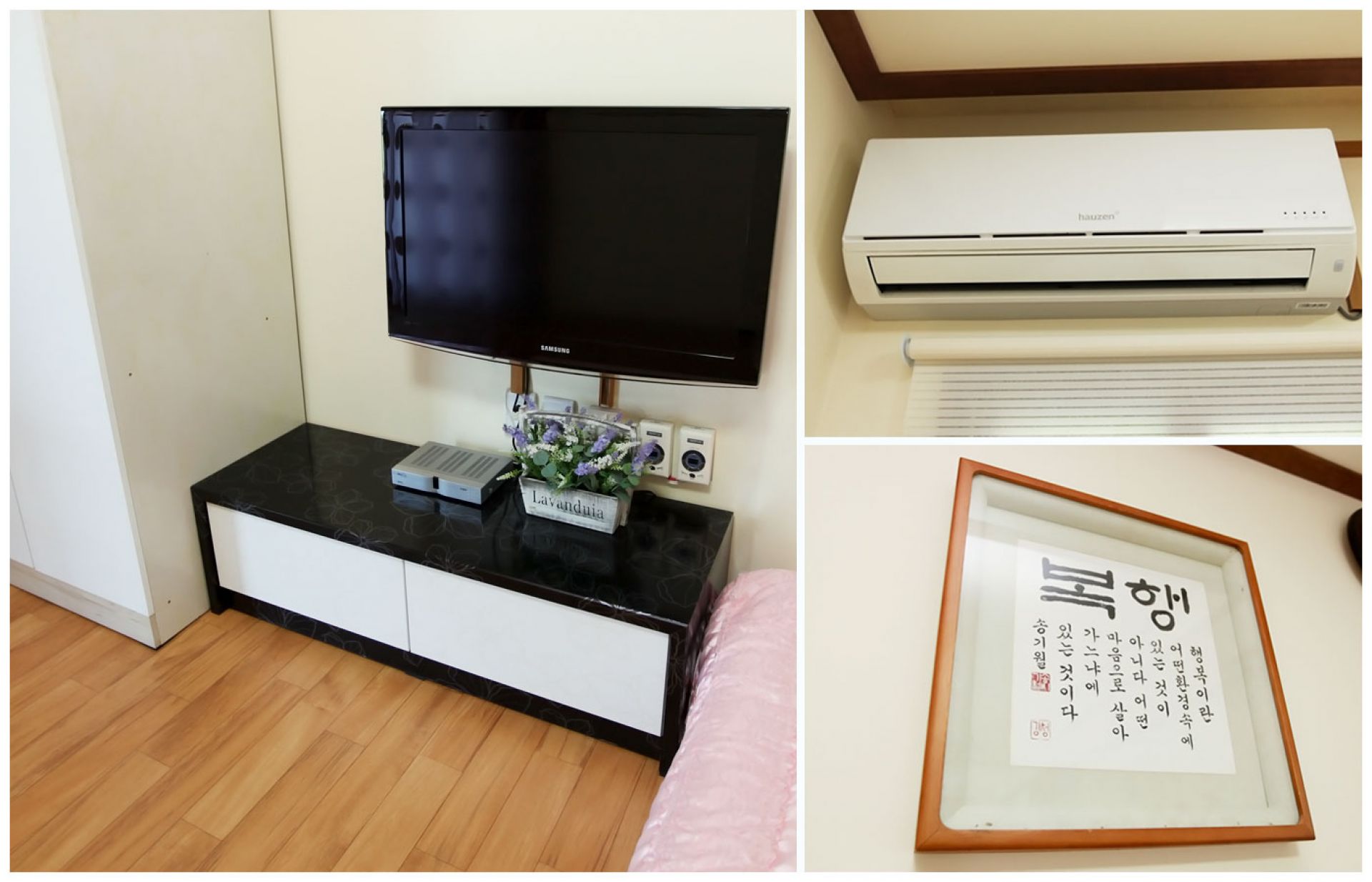 - 시설 : TV, 쇼파겸용침대, 에어컨, 냉장고, 취사, 전기밥솥, 욕실용품, 핫플레이트
